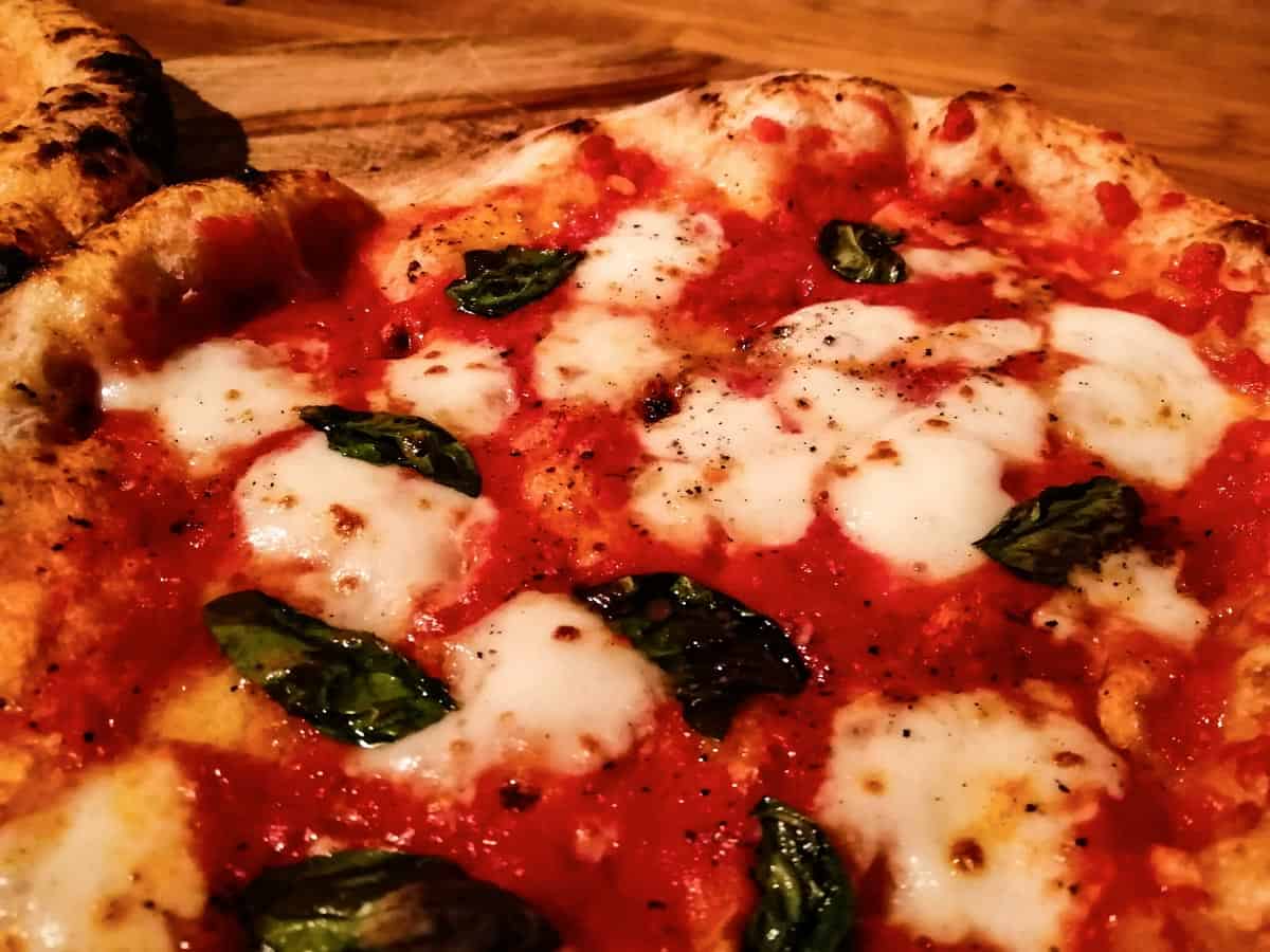 The pizza is cooked at very temperatures (up to 500 degrees celcius) for a short amount of time (60 – 90 seconds) in a wood fired oven using authentic ingredients and traditional dough recipes.